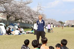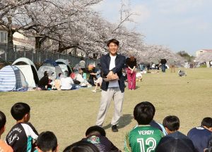 仕事でお花見参加できないのに朝早くから場所取りしてくれたけんたコーチ